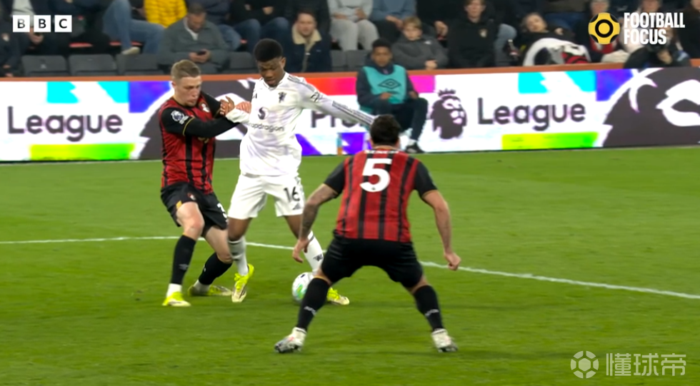 当时阿马德在罚球区内倒地,此前伯恩茅斯后卫阿德里安·特吕费尔似乎用双手接触了他。裁判员斯图尔特·阿特维尔拒绝判罚点球。
