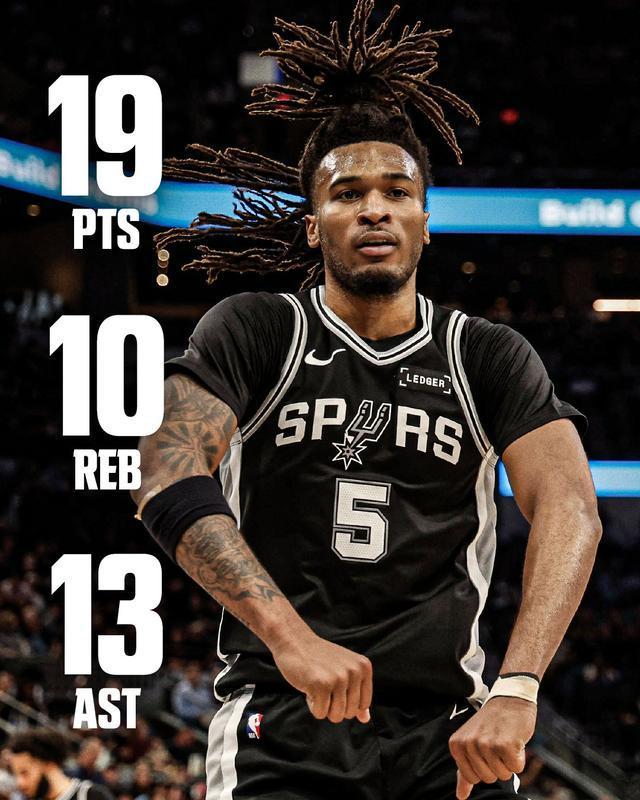 老大不在,小弟们自然得站出来顶上!文班亚马一下场,马刺众人立刻开启了“全民皆兵”模式。斯蒂芬·卡斯尔直接化身全能战士,狂揽19分、10个篮板和13次助攻的豪华三双数据。替补席上站出来的迪伦·哈珀也不甘示弱,贡献了17分、3个篮板和4次助攻。再加上达龙·福克斯、凯尔登·约翰逊以及卢克·科内特纷纷得分上双,马刺用这种多点开花的均衡火力,把76人彻底安排得明明白白。
