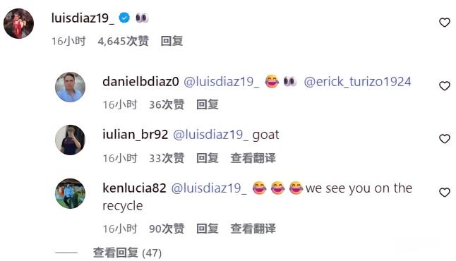 甚至连迪亚斯本人也在该动态下发表了评论,他仅使用了一个“眼睛”的表情,仿佛在说:“我都看到了,我注意到了。”