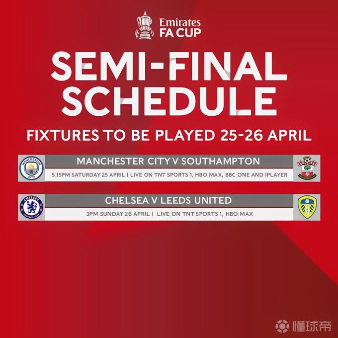 北京时间4月9日,英足总官方发布公告,公布了足总杯半决赛的开球时间。