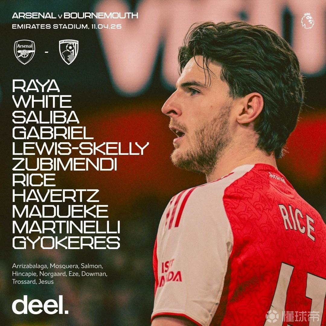 北京时间4月11日19:30,英超第32轮,阿森纳主场对阵伯恩茅斯。赛前首发公布。