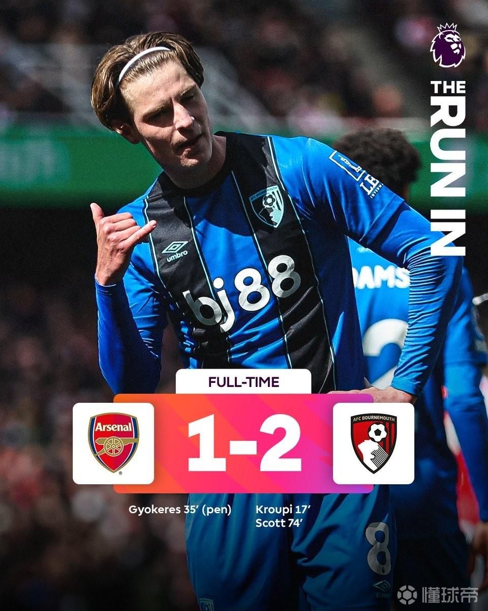 此役客场对阵阿森纳,先入一球的伯恩茅斯一度被对手扳平比分,随后在下半场再入一球,最终2-1取胜。