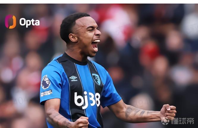 第17分钟,克鲁皮接队友传中,小角度凌空垫射破门,帮助伯恩茅斯率先打破僵局。