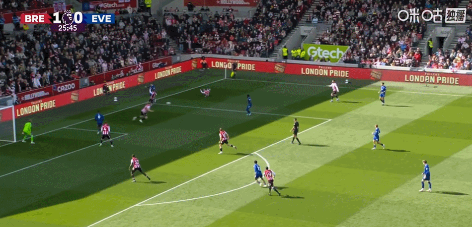 北京时间4月11日22:00,英超第32轮,布伦特福德主场对阵埃弗顿。上半场,皮克福德铲倒沙德被判罚点球,伊戈尔-蒂亚戈点射命中,布兰斯韦特远射打偏,贝托头球扳平比分,半场战罢,布伦特福德1-1埃弗顿。
