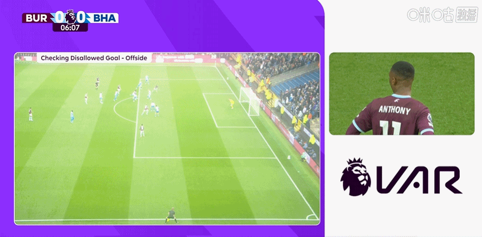北京时间4月11日22:00,英超第32轮,伯恩利主场对阵布莱顿。上半场,杰登-安东尼进球被吹越位在先,扬库巴-明特远射被门将没收,格罗斯助攻魏费尔推射建功,半场战罢,伯恩利0-1布莱顿。