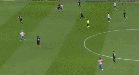 比赛的第6分钟,埃里克-加西亚回传球,霍安-加西亚停球失误,导致马竞取得领先。从慢镜头来看,球场草坪不够平整,球在草坪上蹦蹦跳跳,是霍安-加西亚停球失误的原因之一。