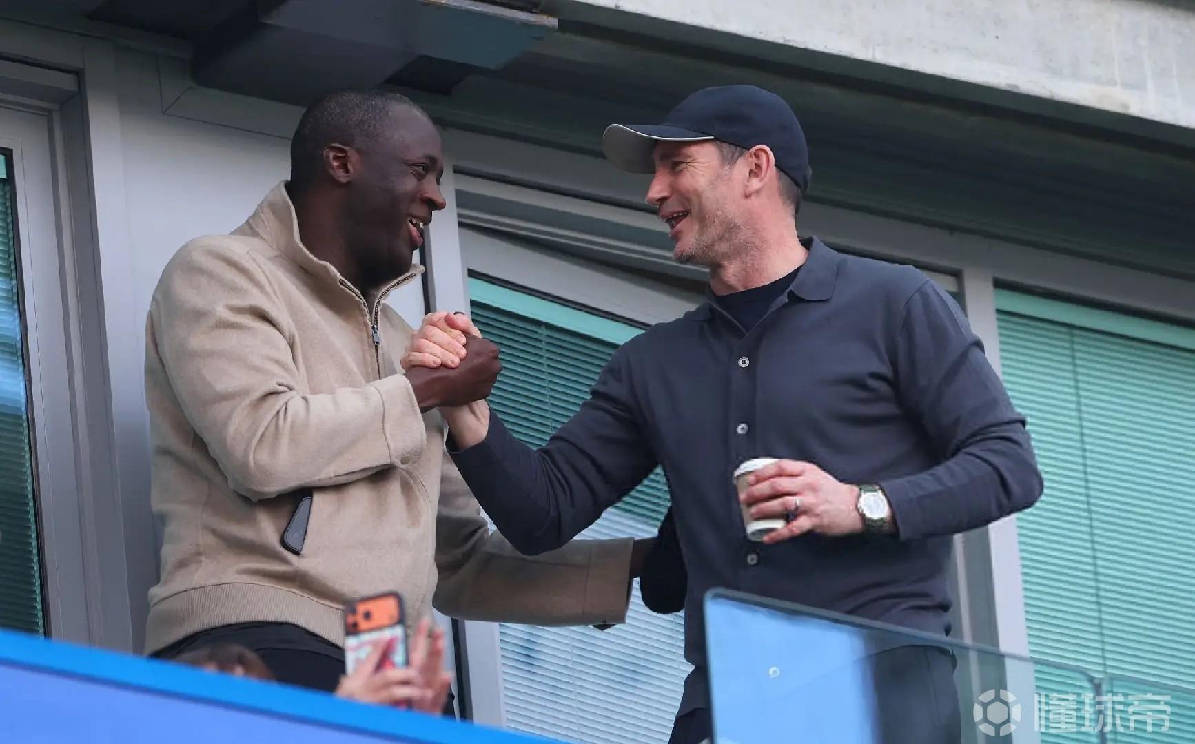 切尔西vs曼城的英超焦点战正在进行,而蓝军传奇兰帕德和曼城传奇亚亚-图雷出现在了看台上。